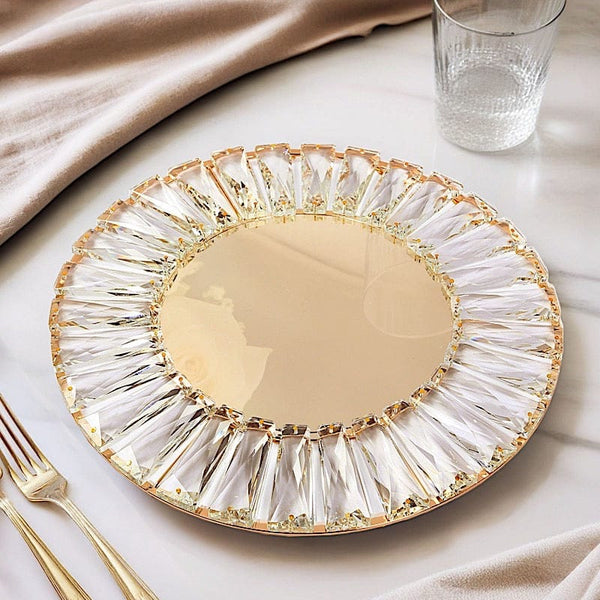 2 pcs 13 in Round Mirror Glass Charger Plates with Rhinestone Trim