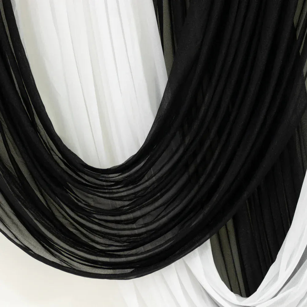 Whether used as a room decoration or a photography backdrop accent, this sheer chiffon drapery fabric adds an elegant and stylish touch to any setting. Made from high-quality chiffon, this fabric will bring texture and charm to weddings, parties, garden dinners, or any special gathering. Perfect for creating beautiful stage backgrounds, photo booths, or wedding arch decorations. Pair it with garlands, flowers, or LED lights to set the perfect mood and capture stunning photos. It also makes a lovely addition to any window in your home!