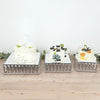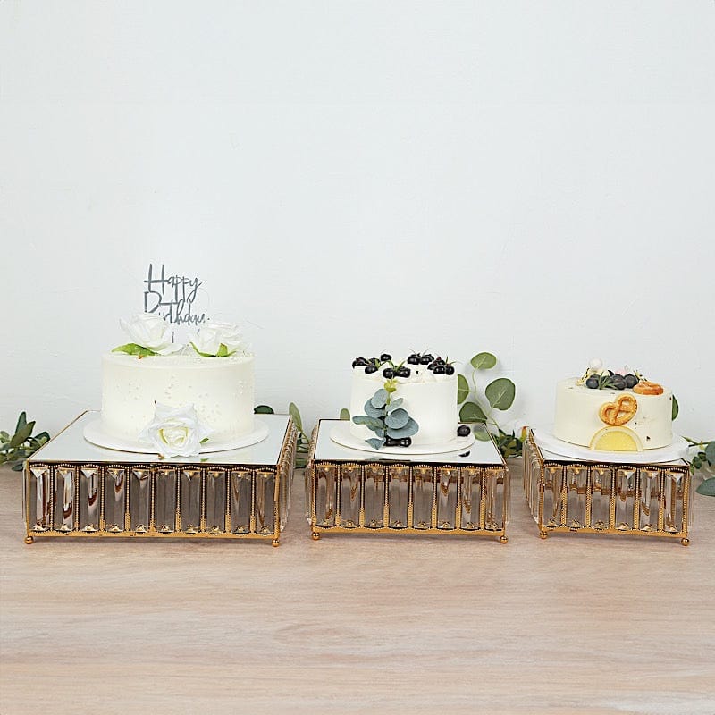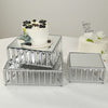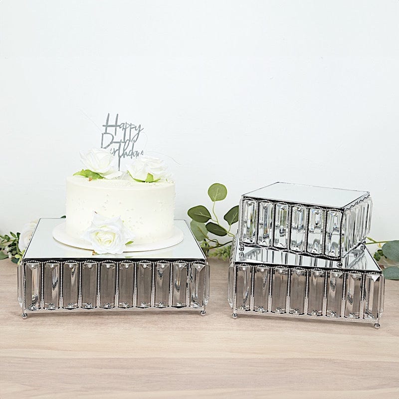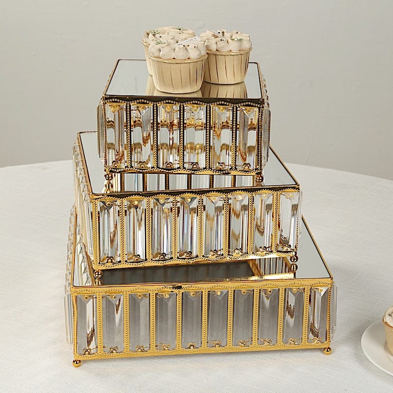 / 3 Square Stackable Metal Cake Stands with Crystal Pendant and Mirror Top
