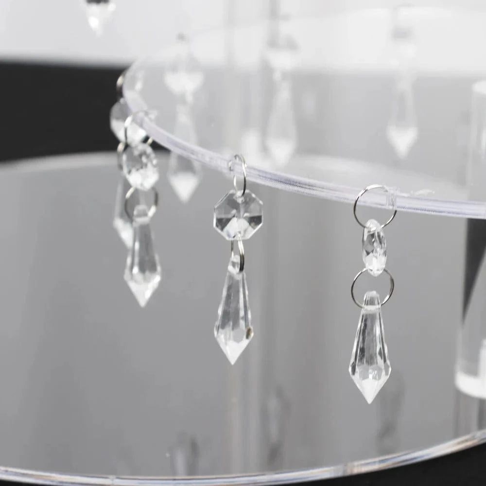 / Clear 3 Tier Round Acrylic Cake Stand Cupcake Pedestal with Crystal Pendants
