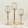 3 Gold and Clear Crystal Pendant Hurricane Candle Holders