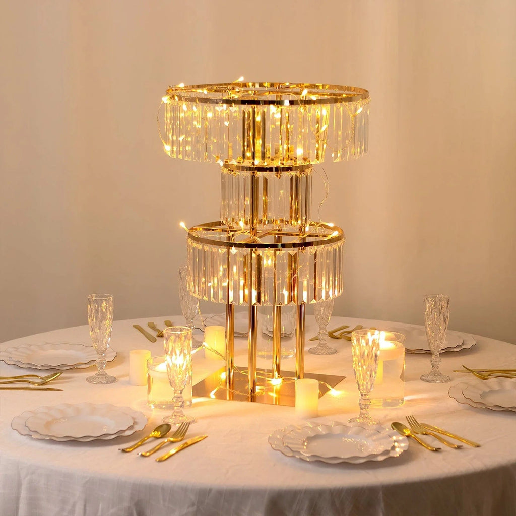 / 3-Tier Gold 27" Metal Chandelier Flower Stand with Clear Acrylic Crystals