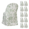 / 10 White Polyester Folding Chair Covers with French Toile Pattern