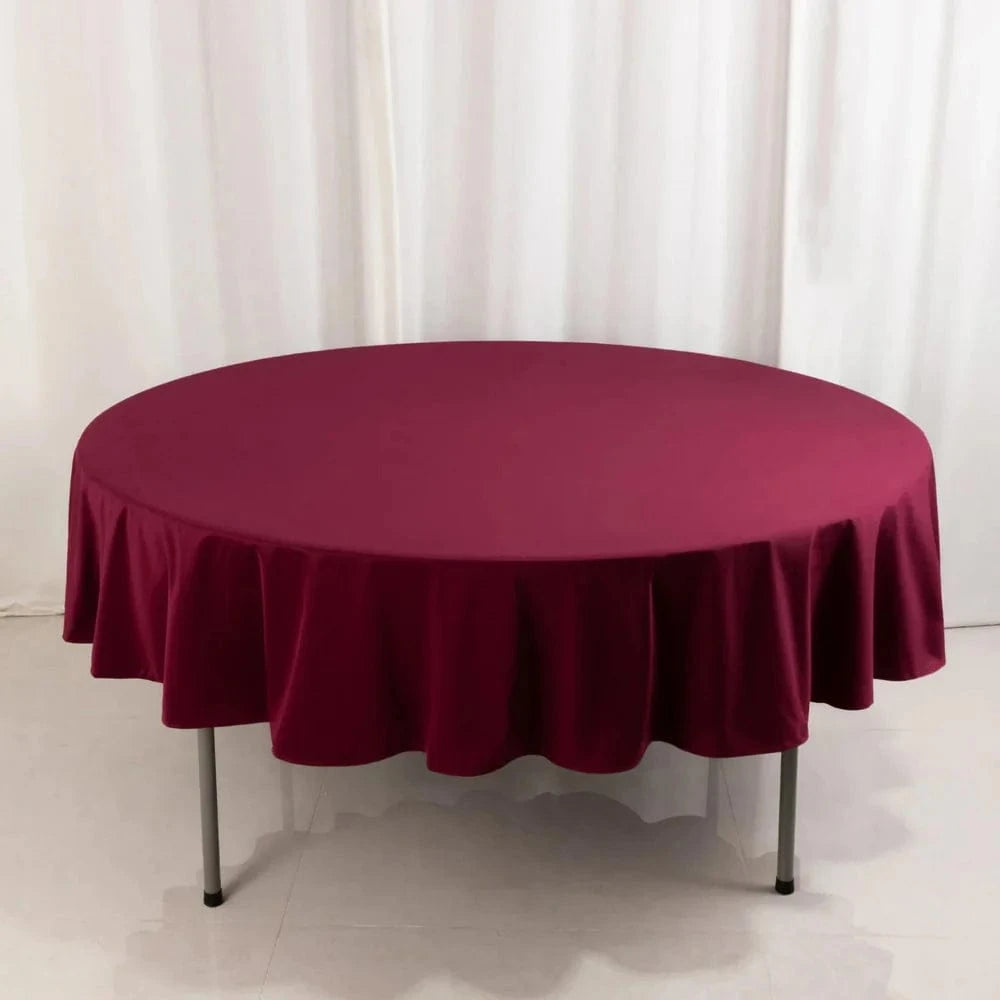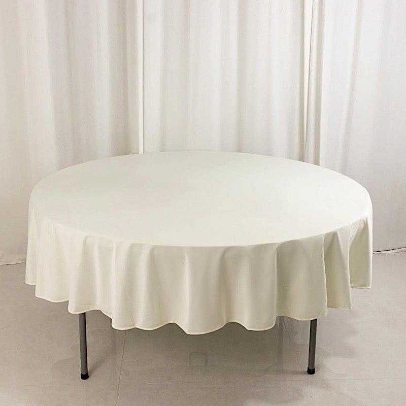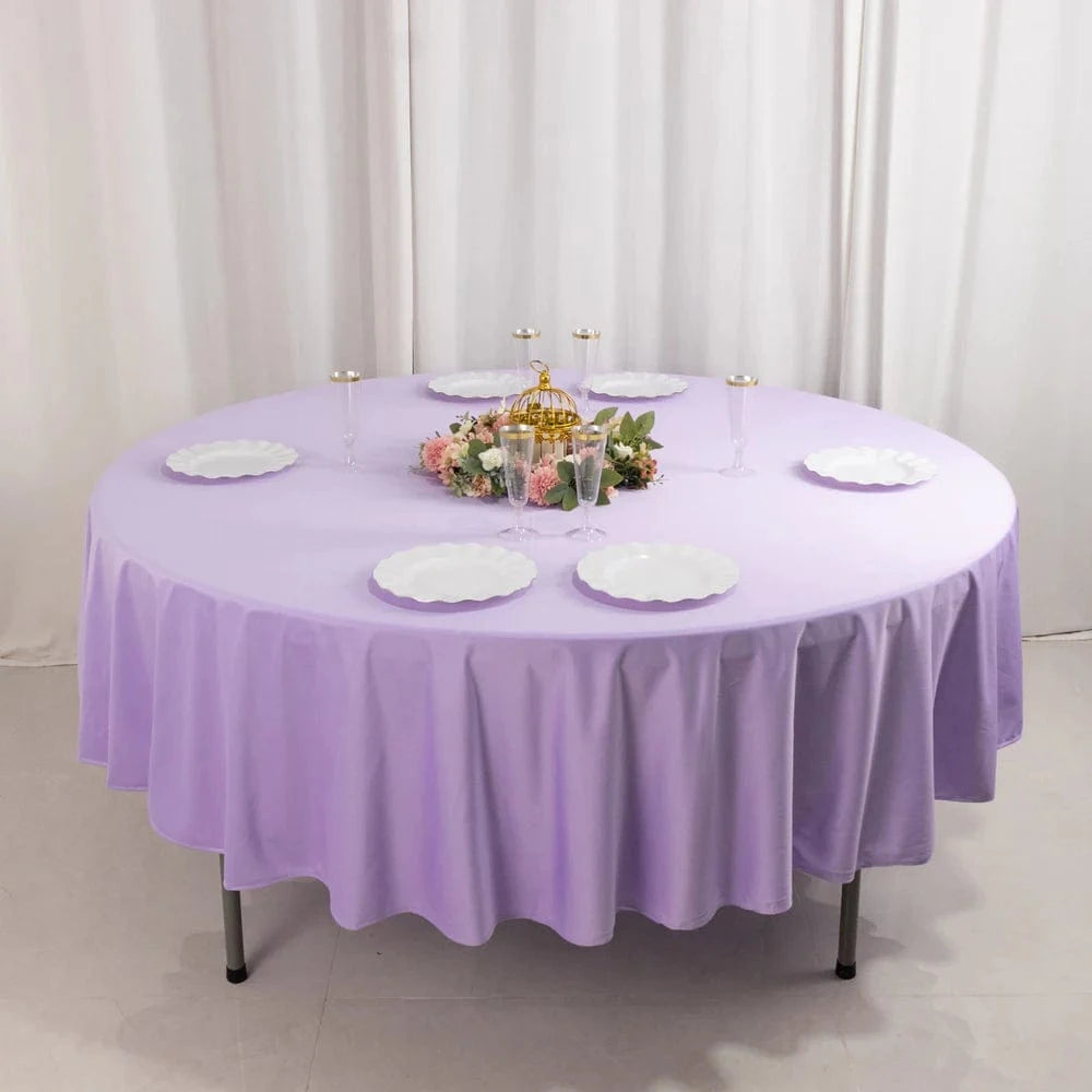 Elevate the look of your reception tables with elegant round tablecloths from Leilani Wholesale! Crafted from high quality scuba polyester fabric, this 90" round, wrinkle-free tablecloth will create a stylish table decoration. Pair these stylish linens with matching napkins and dinnerware to add an extra decorative touch to your party table setting. Perfect for weddings, parties, events or any special occasions.