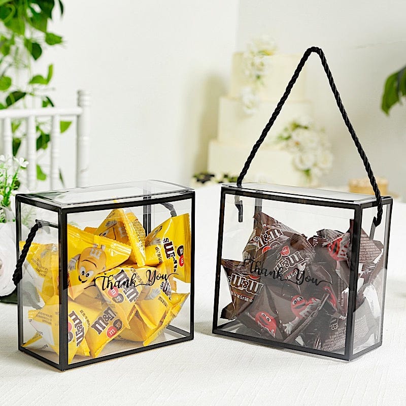 25 Clear PVC Favor Boxes with Rope Handles and Thank You Print