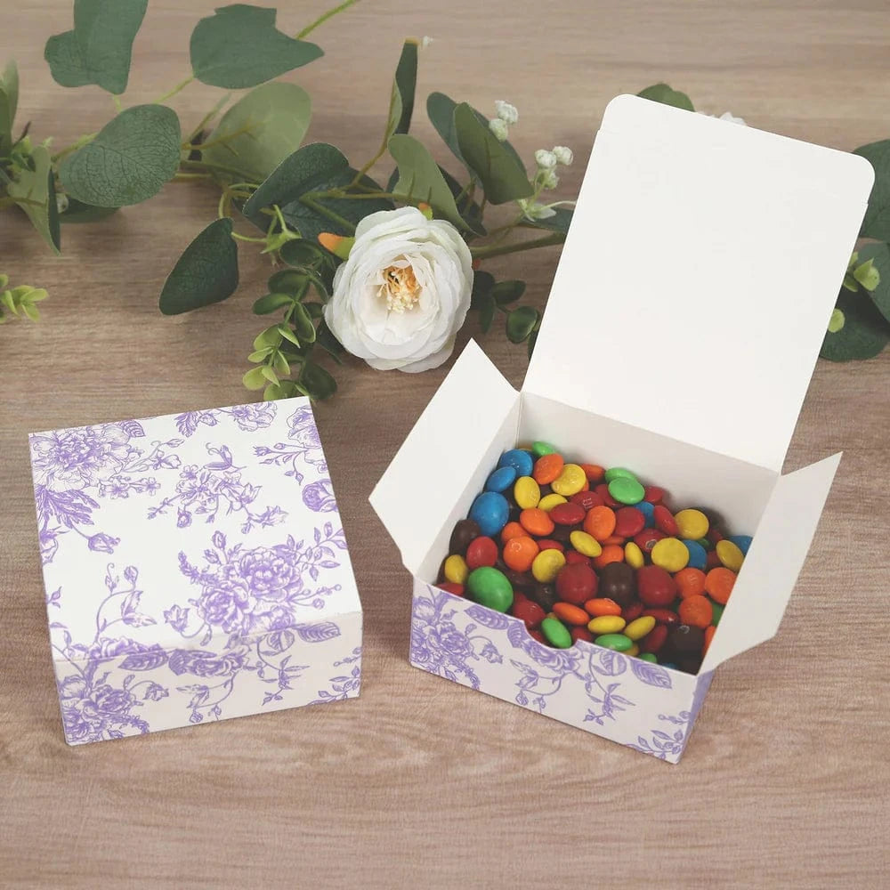 / 25 White 4x4 in Floral Printed Square Gift Boxes Party Favor Holders
