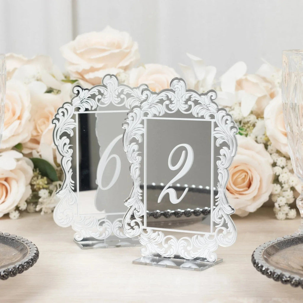 / Elegant Mirror Arch Acrylic with Baroque Lace Border Table Numbers 1-10