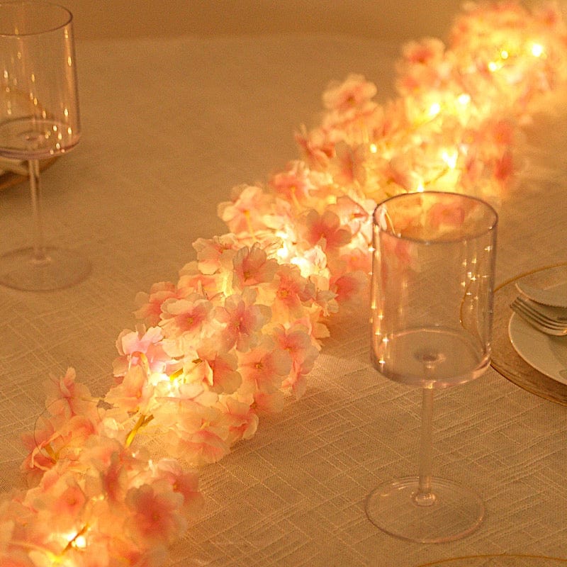 Provide fun lighting to any decorations with this LED cherry blossom garland! Featuring a realistic pink cherry artificial blossoms with bright string lights, this LED garland will create a dazzling look for your wedding reception, parties, events or any special occasion. This battery-operated garland can be used as a backdrop or as an accent to your table centerpieces, pillars, arches, poles, banisters or floral decor to create a fairytale effect.