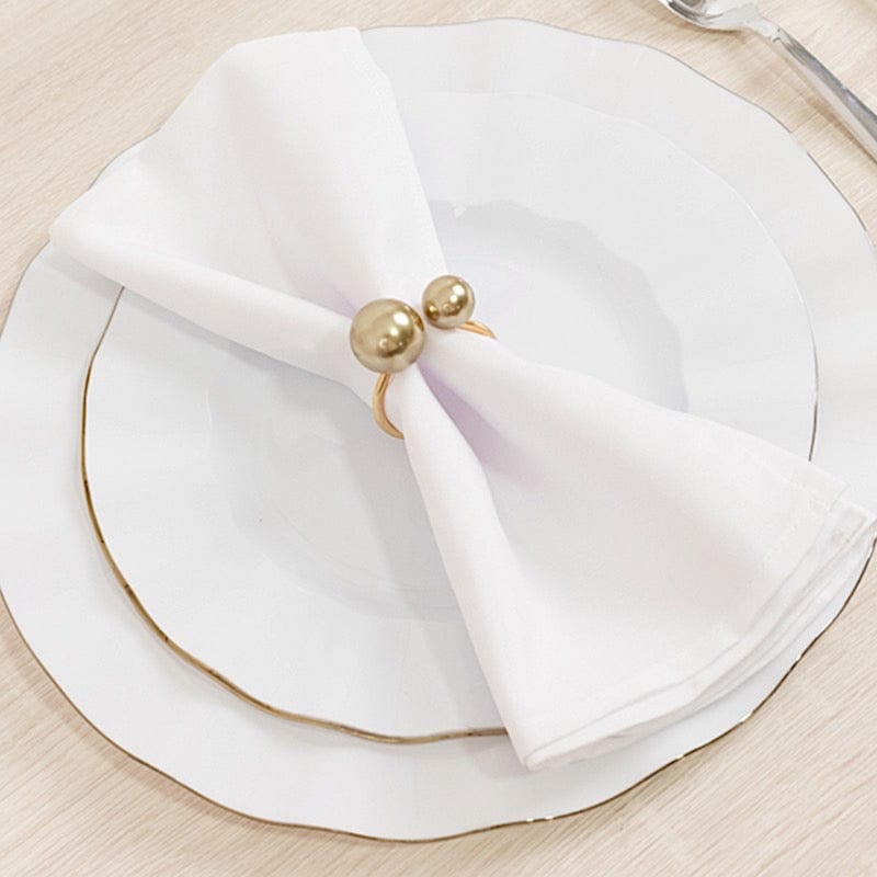 / 10 Gold 2.5 in Metal Dinner Napkin Rings with White Faux Pearls