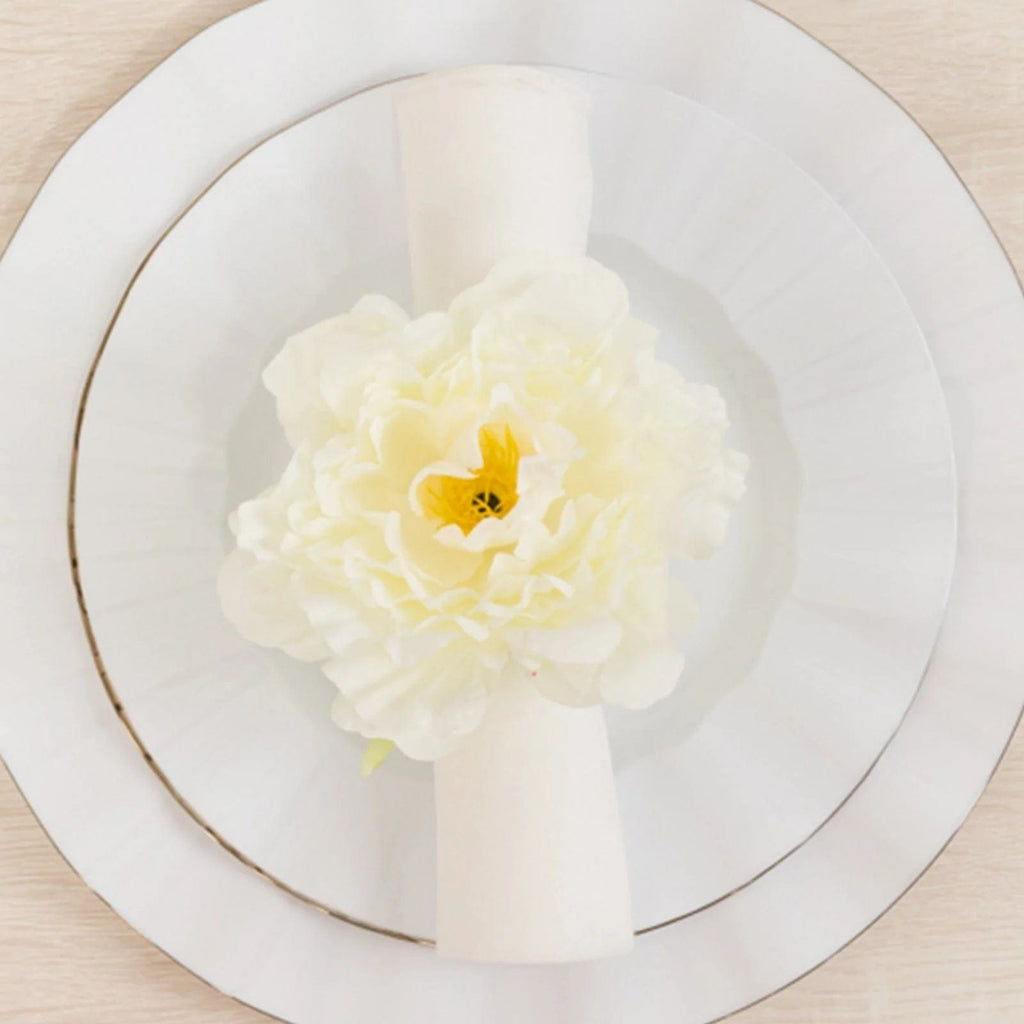 4 Metal Napkin Rings with Artificial Silk Peony Flower