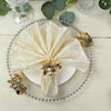 Add a touch of elegance to your wedding reception or special event with these glossy gold metal leaf napkin rings. Crafted from high-quality metal, they bring sophistication and charm to any table setting. Sold in sets of 8, these napkin rings also make a perfect and thoughtful gift.