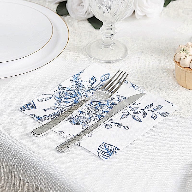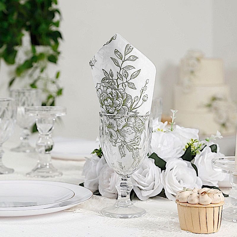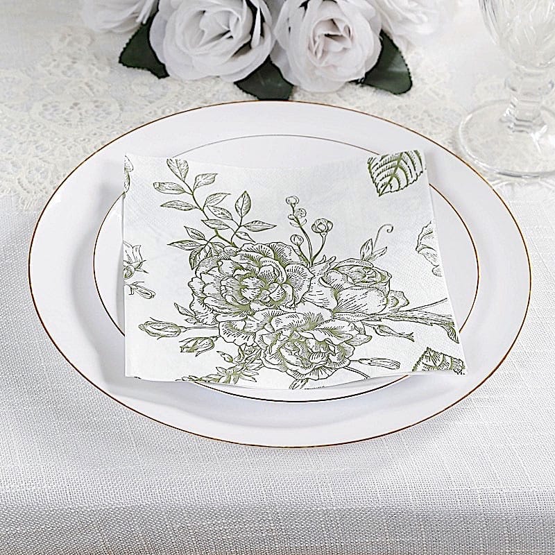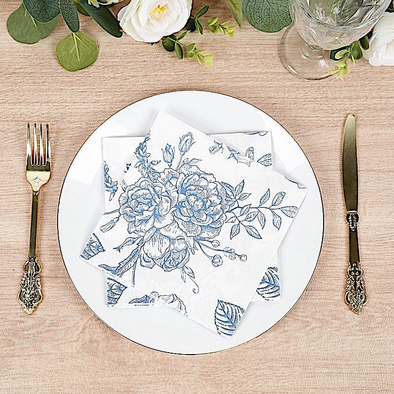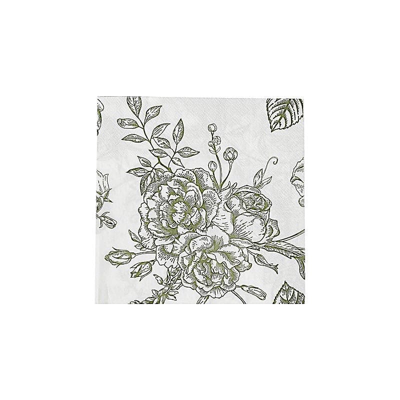 / 50 White 2-Ply Paper Cocktail Napkins with Matte French Toile Floral Pattern