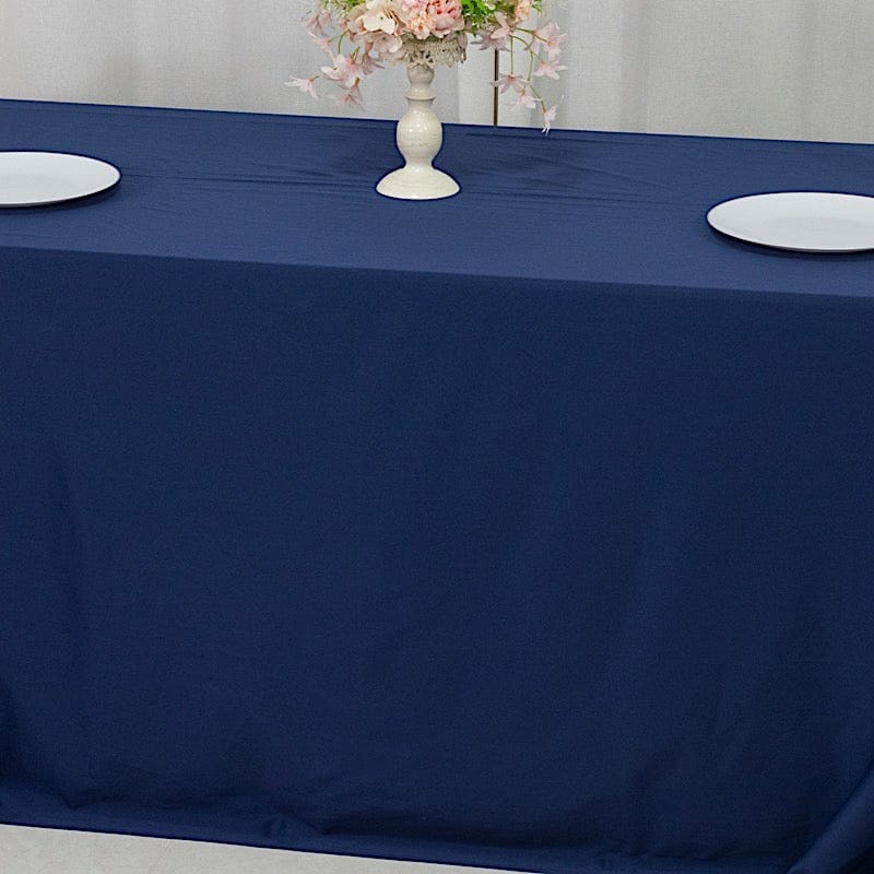 Celebrate your special day with your reception accented with these fire retardant table linens. This dining tablecloth will add a sophisticated touch to your party tables in an instant. High-quality scuba polyester fabric will create a stylish, wrinkle-free look for your table setting. Whether for family dinners, get-togethers, weddings or any special events, this rectangle tablecloth is perfect for dressing up your dinner tables!