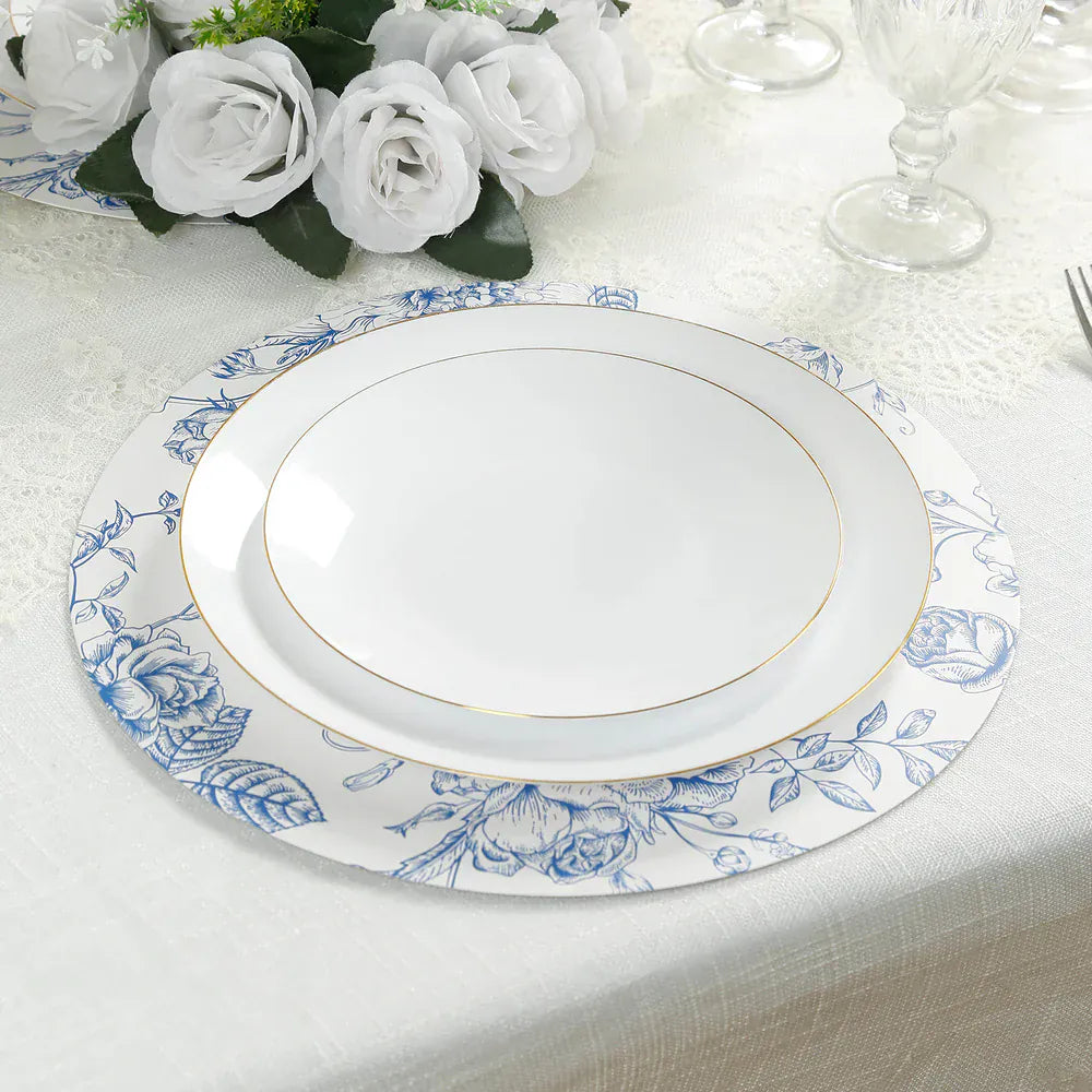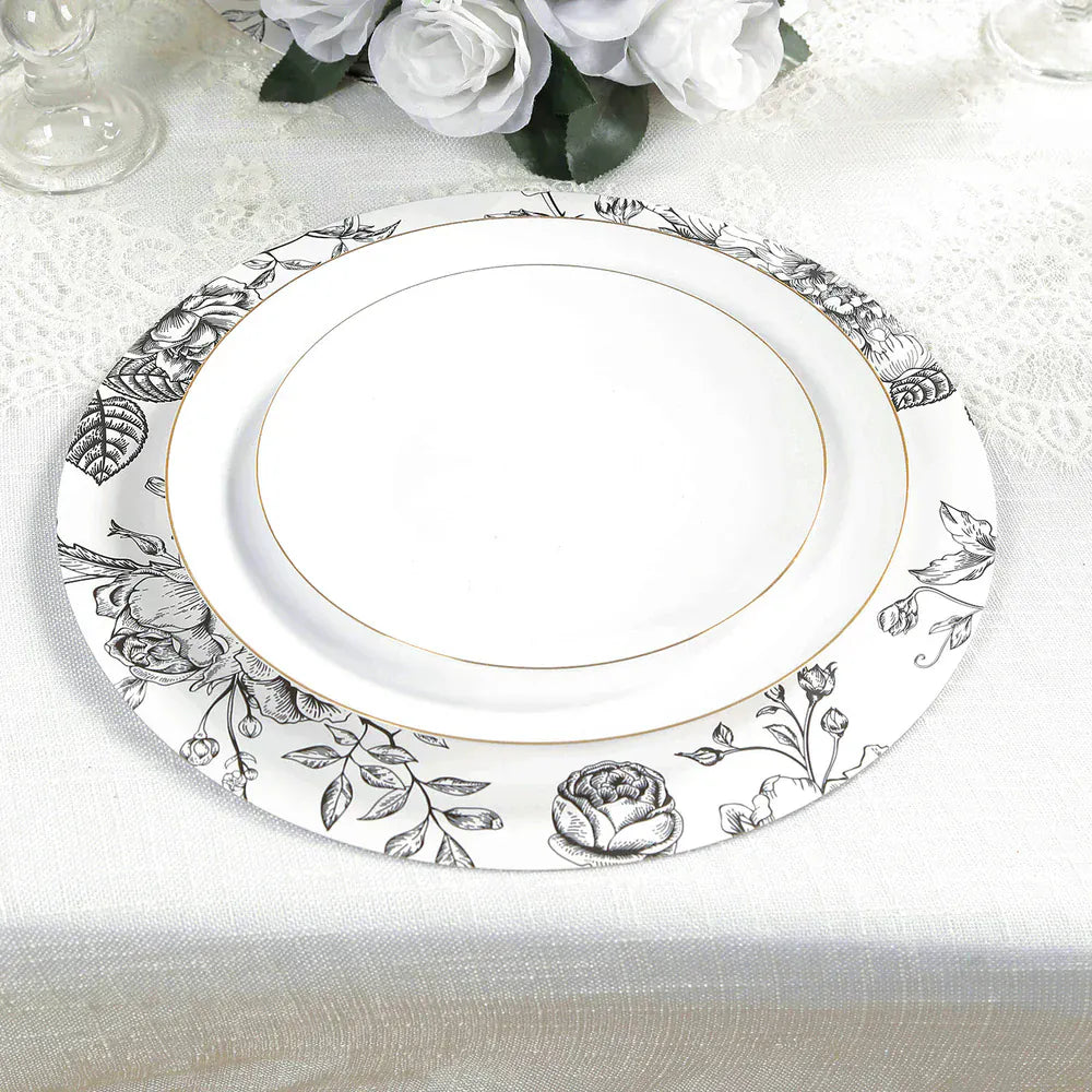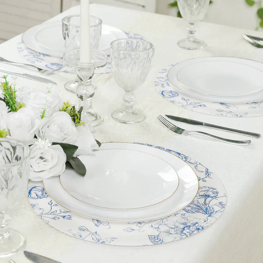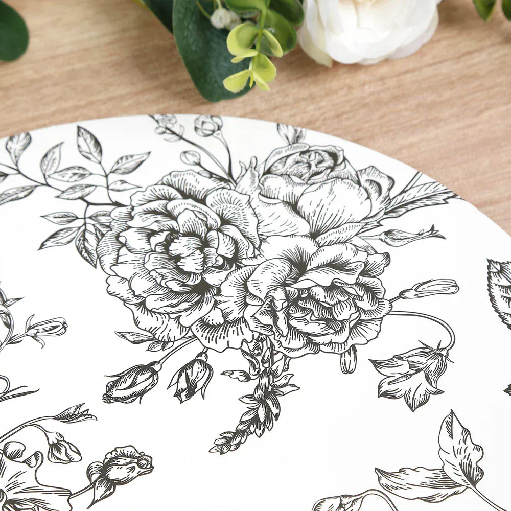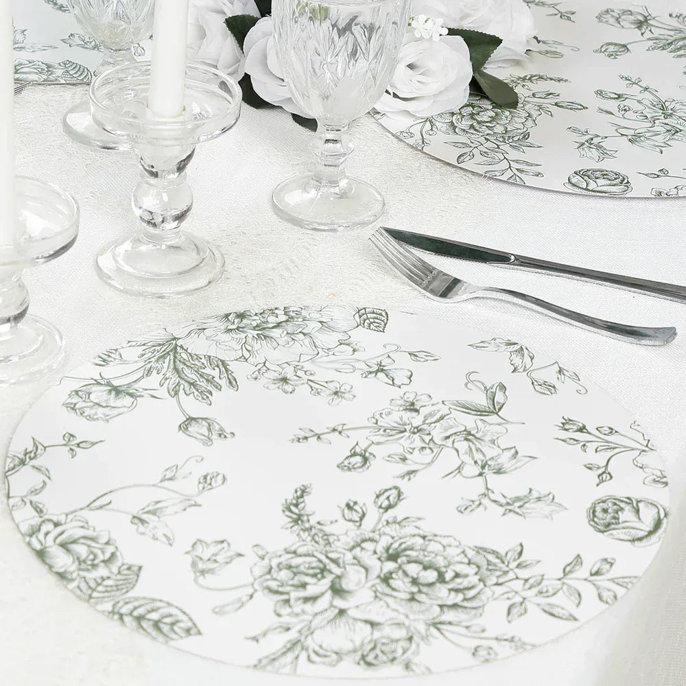 / 10 White Cardboard Disposable Table Placemats with French Toile Print
