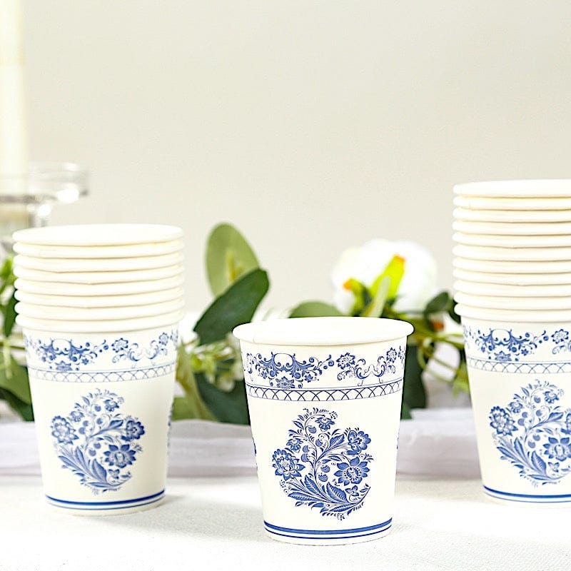 24 Paper 9 oz Cups Damask Floral Pattern