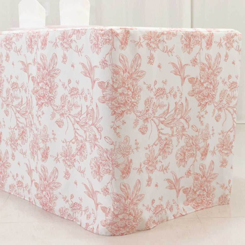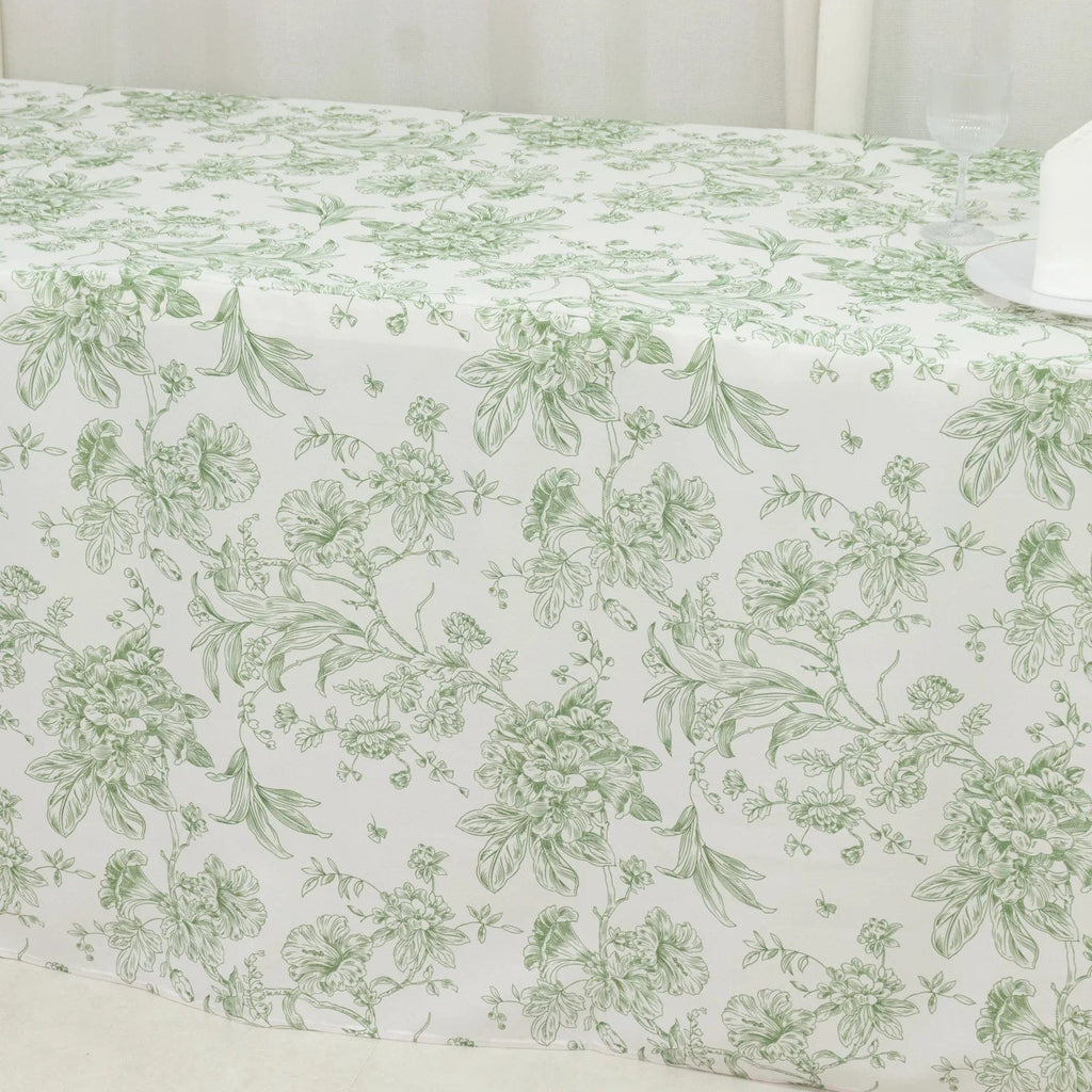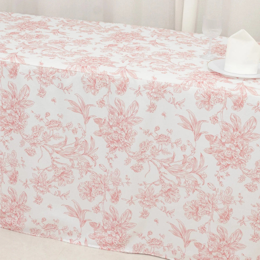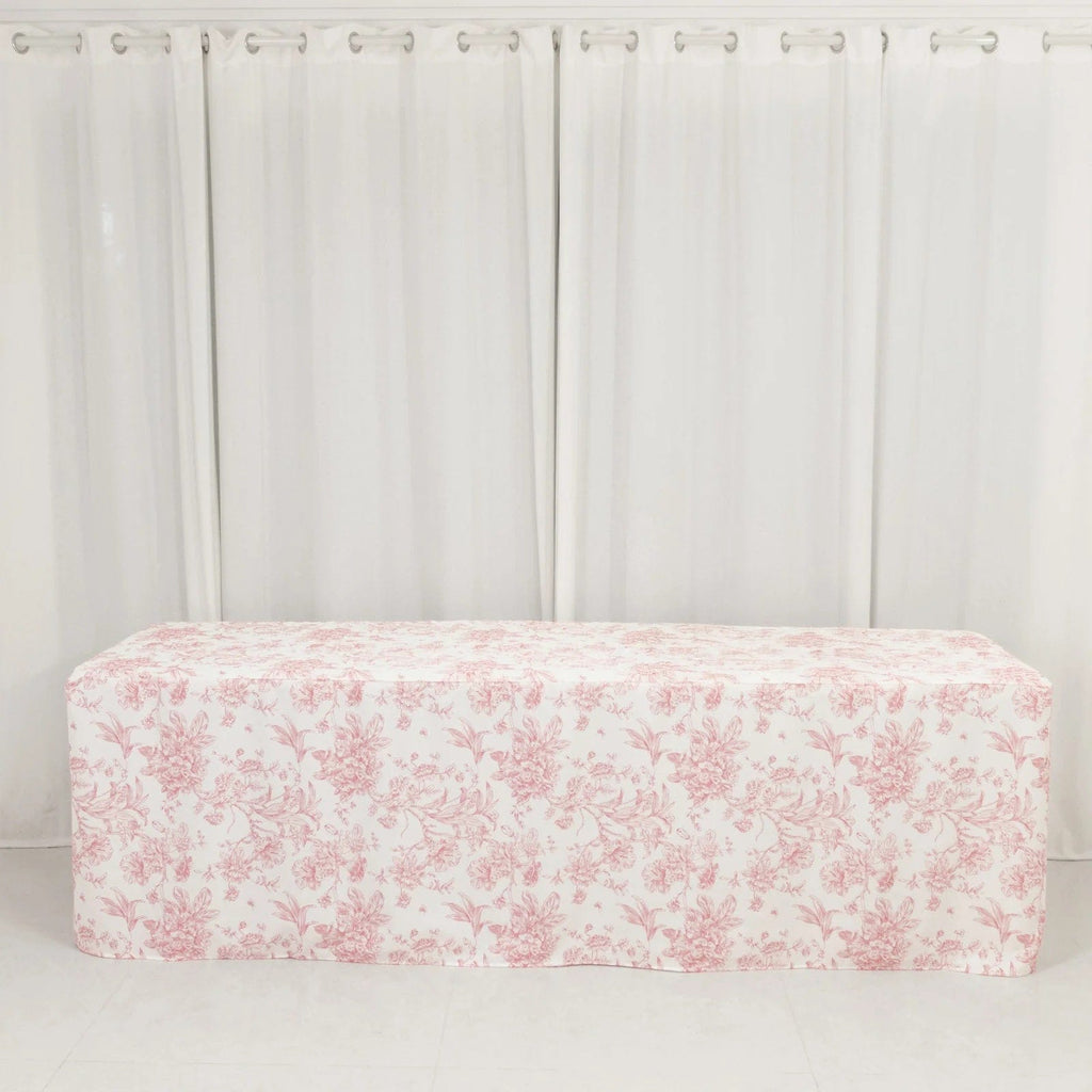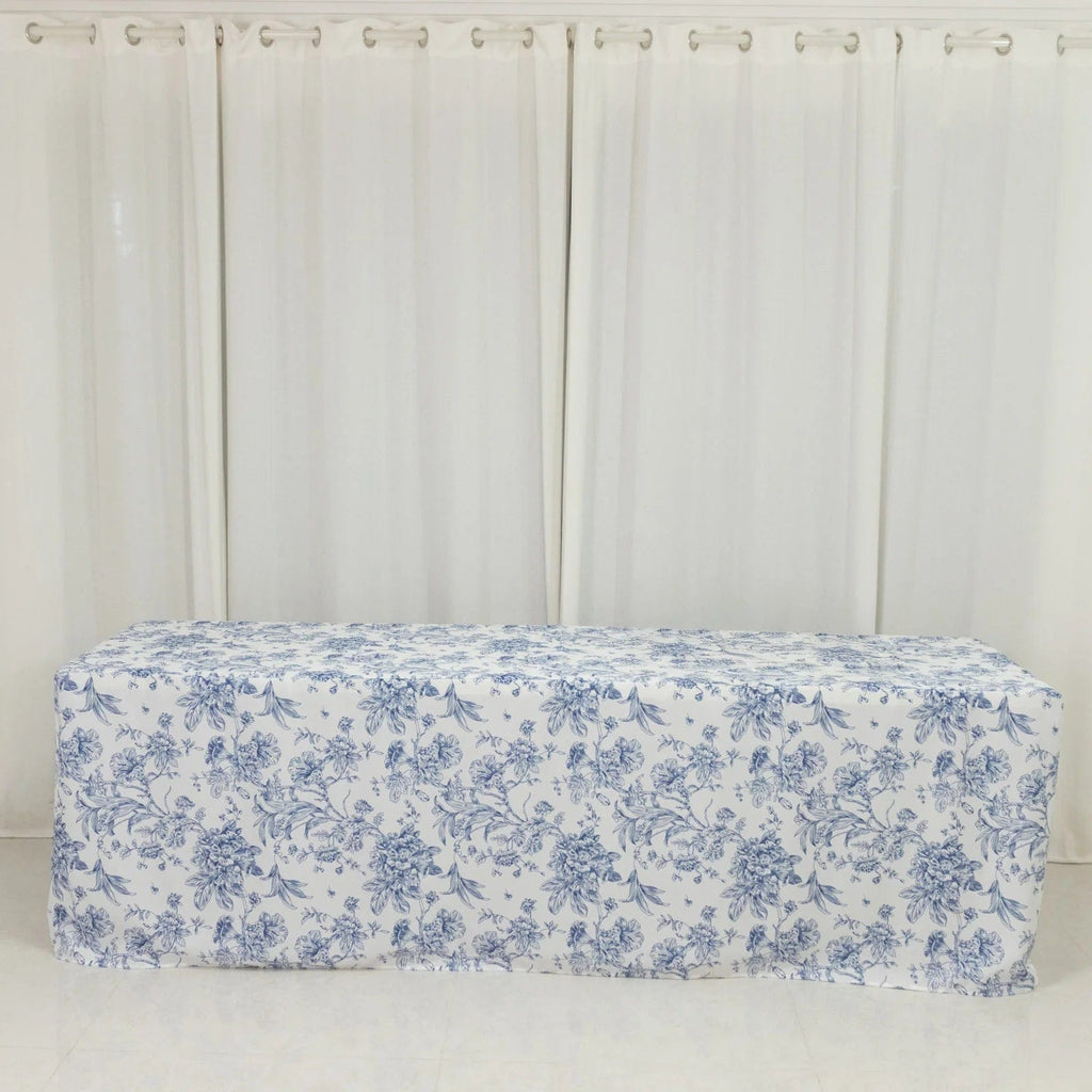 / 8 feet Fitted Polyester Rectangle Tablecloth with French Toile Floral Pattern