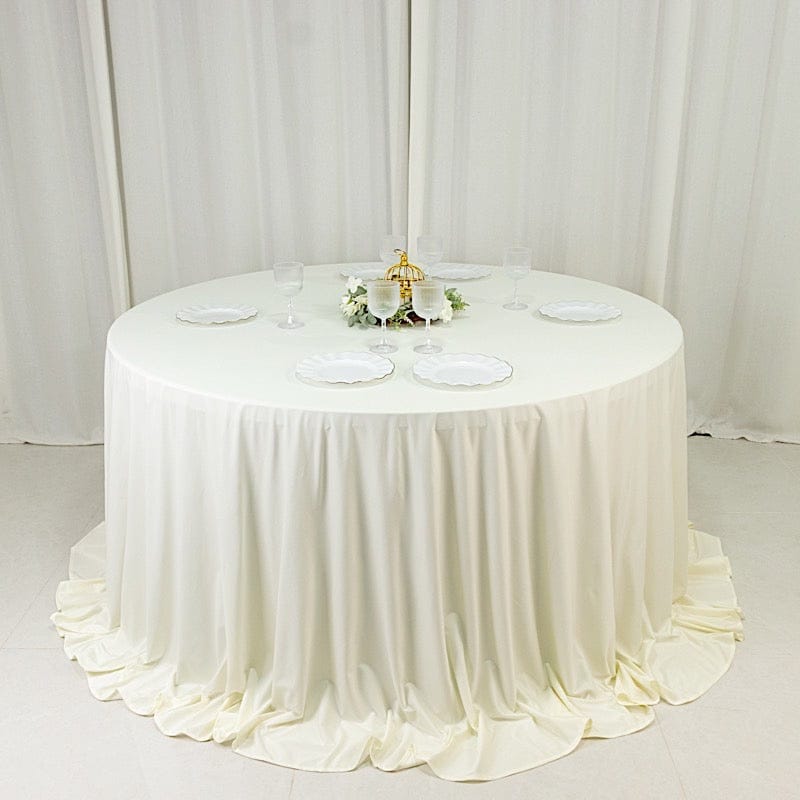 Elevate the look of your reception tables with elegant fire retardant round tablecloths from Leilani Wholesale! Crafted from high quality scuba polyester fabric, this 132" round, wrinkle-free tablecloth will create a stylish table decoration. Pair these stylish linens with matching napkins and dinnerware to add an extra decorative touch to your party table setting. Perfect for weddings, parties, events or any special occasions.