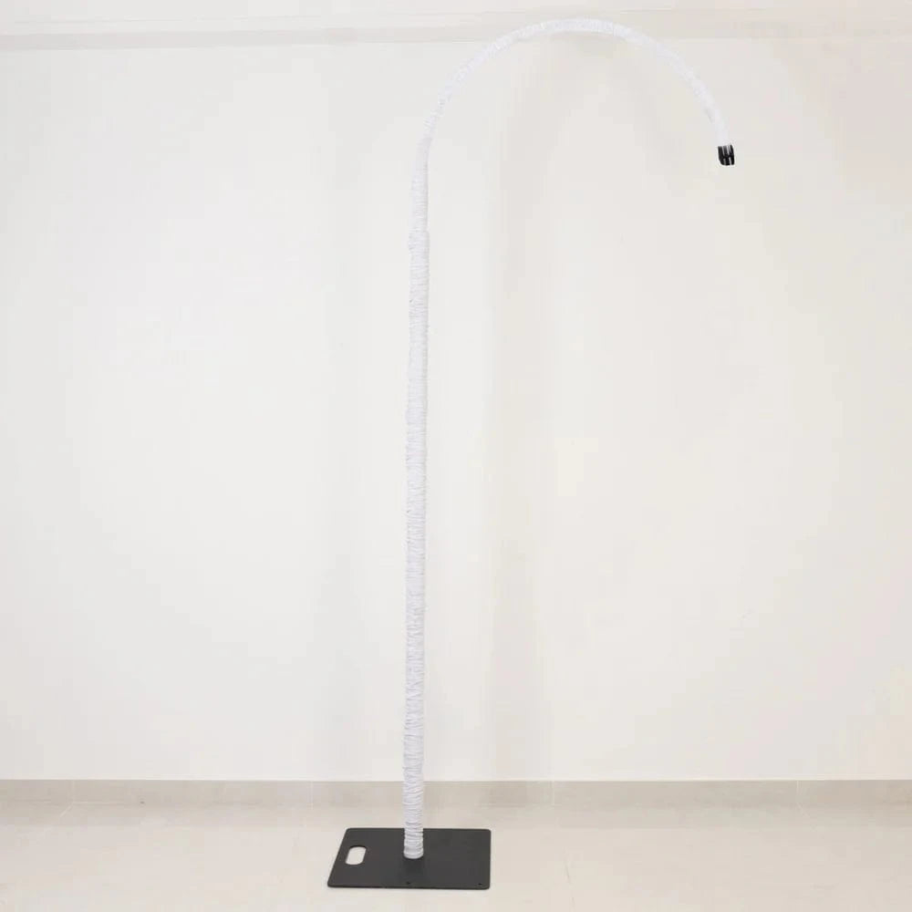 White spandex upright pole cover, 20 ft. Stretch fabric design neatly conceals poles and hardware, creating a smooth, elegant look for weddings, stage decor, lighting setups, and event displays.