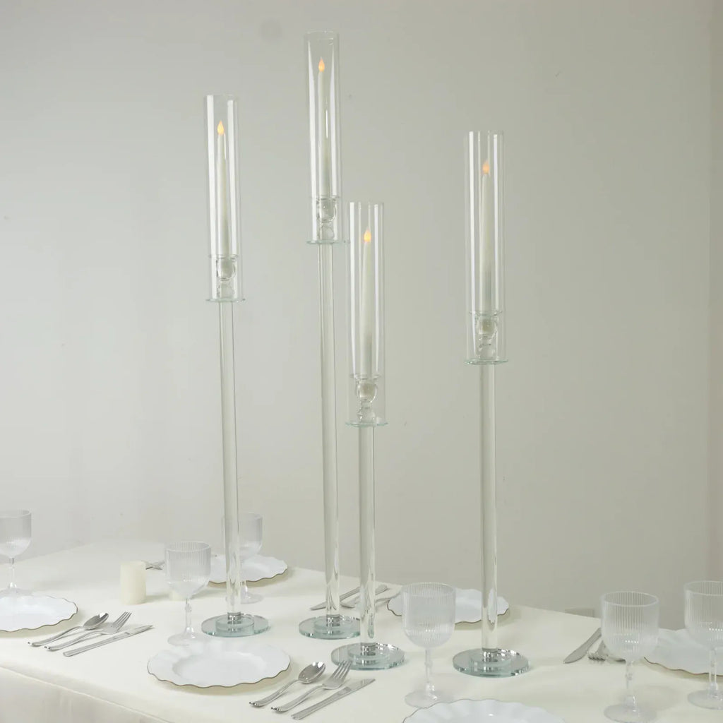These elegant acrylic taper candle holders are the perfect pick to bring a sense of ambiance to any room or space. Featuring a crystal clear look from top to bottom, this set of stylish pieces is an ideal addition to your wedding, party or event decorations. These taper candle holders are designed with a round base and cylinder shades to secure your taper candles. Use them as centerpieces for your home or as decorations for your special occasions. The possibilities are endless!