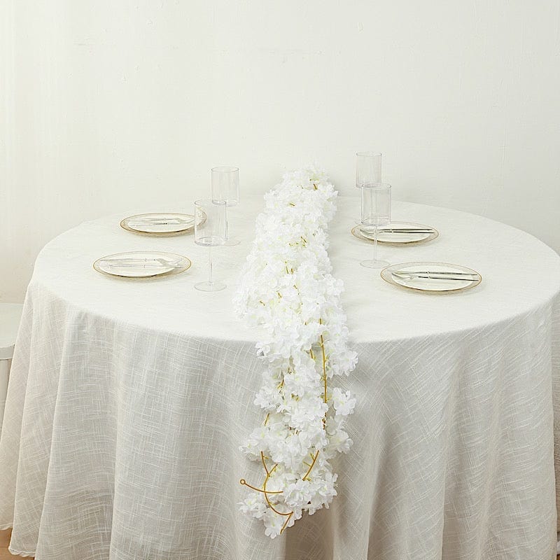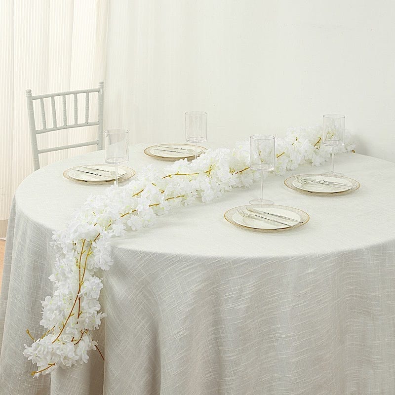 Decorating is simple with these incredibly realistic flower garlands. Whether to grace an aisle, stairway or arch or to decorate your party tables, these silk flower garlands will create a warm and welcoming atmosphere for your guests. Perfect decor to bring an earthy look to your weddings, parties and events. These faux cherry flower vines will also add a fresh, clean look to any space in your home. Lovely accents for your mantle, cabinets, stairs, doors and windows. The possibilities are endless!