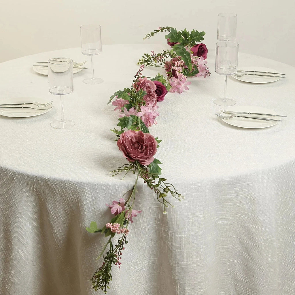 Decorating is simple with these incredibly realistic flower garlands. Whether to grace an aisle, stairway or arch or to decorate your party tables, these silk flower garlands will create a warm and welcoming atmosphere for your guests. Perfect decor to bring an earthy look to your weddings, parties and events. These faux rose flower vines will also add a fresh, clean look to any space in your home. Lovely accents for your mantle, cabinets, stairs, doors and windows. The possibilities are endless!