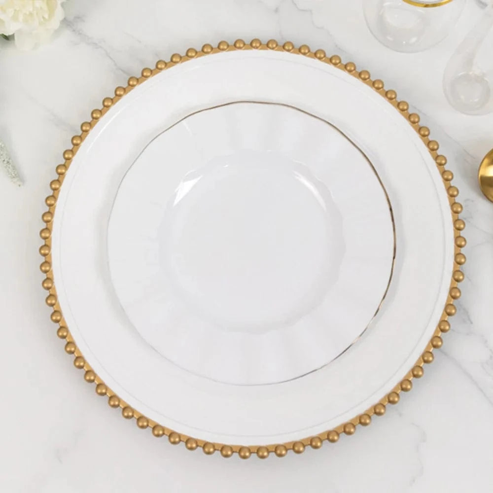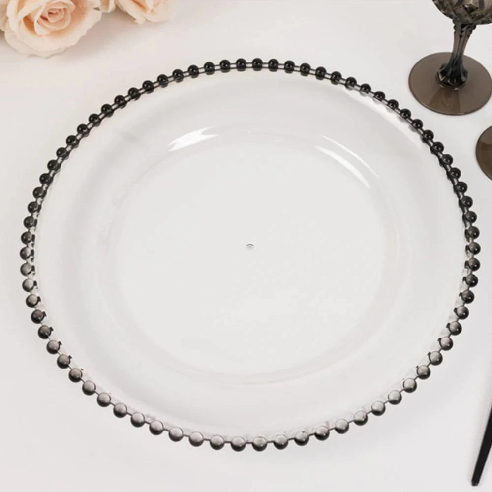 6 pcs 13 in Beaded Trim Round Acrylic Charger Plates