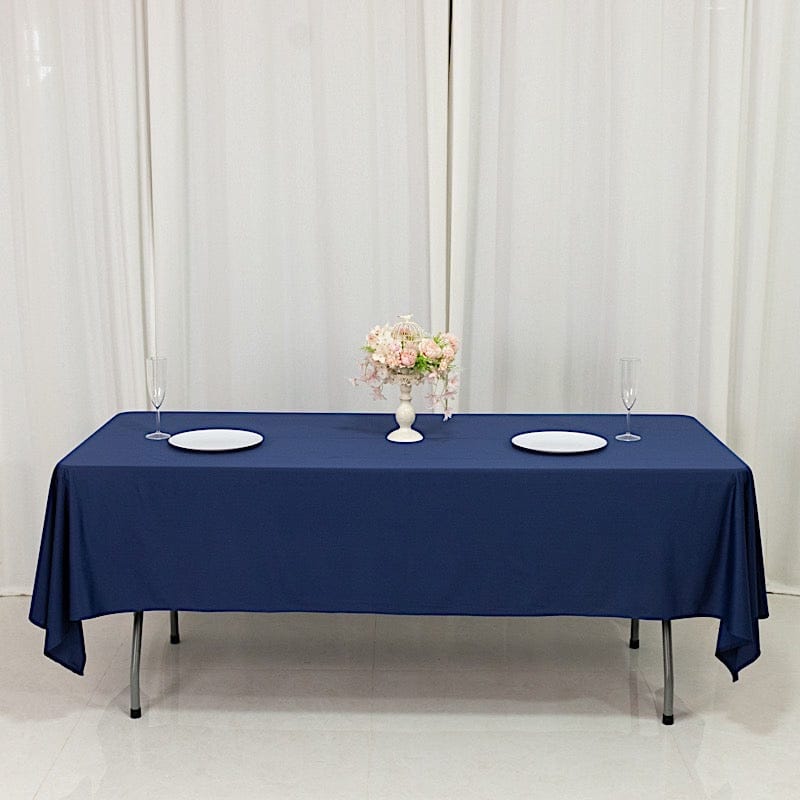 Celebrate your special day with your reception accented with these fire retardant table linens. This dining tablecloth will add a sophisticated touch to your party tables in an instant. High-quality scuba polyester fabric will create a stylish, wrinkle-free look for your table setting. Whether for family dinners, get-togethers, weddings or any special events, this rectangle tablecloth is perfect for dressing up your dinner tables!
