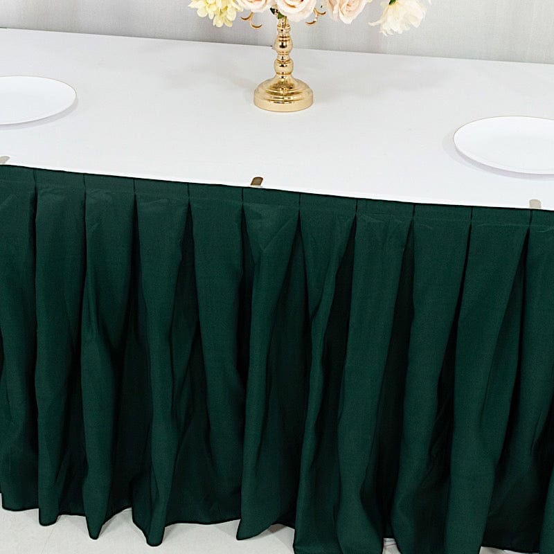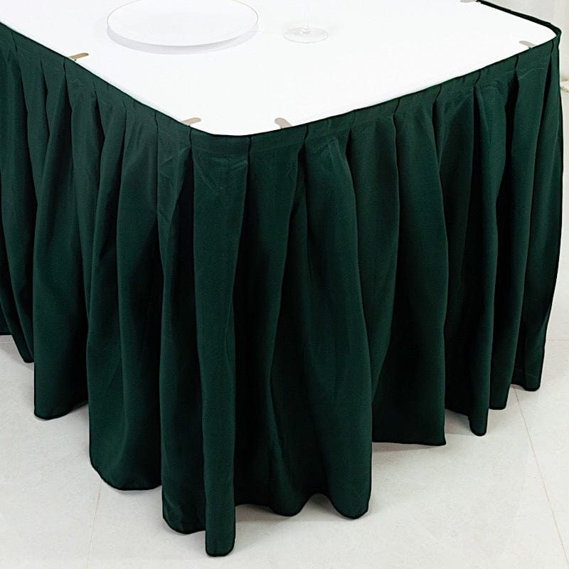 Celebrate your special day and set particularly welcoming tables for your wedding reception or party with these beautiful polyester table skirts. Decorating is easy with this polyester banquet tables. All table skirts come with closure strip on top for attachment to clips so they could be easily attached to your tables.